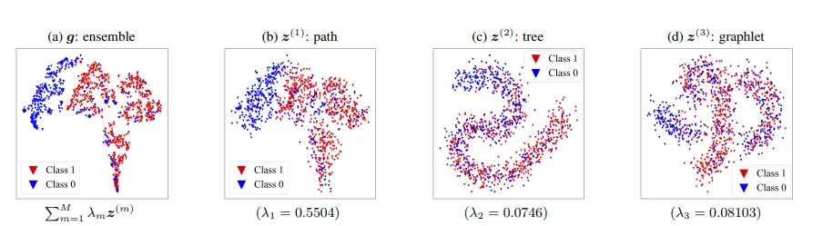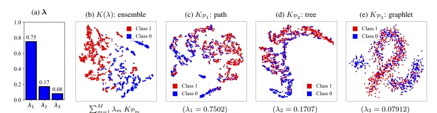 ایده محوری این رویکرد آن است که بهجای اتکا به یک الگوی واحد، چندین کرنل مبتنی بر الگوهای مختلف بهصورت همزمان مورد استفاده قرار گیرند 🔗. با ترکیب این کرنلها در قالب یک کرنل مجموعهای وزندار، میتوان سهم و نقش هر الگوی گرافی را در نمایش نهایی گراف مشخص کرد. وزنهای یادگرفتهشده مستقیماً بیانگر اهمیت هر الگو هستند و همین موضوع، توضیحپذیری نمایش گراف را بهطور طبیعی فراهم میکند.